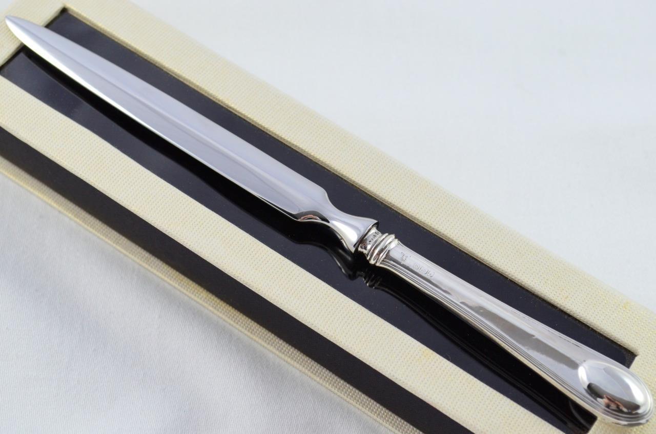 On offer is a Genuine Sheffield Assayed Sterling Silver Handled Letter Opener bearing the Mirror Pattern. The item has a steel blade with a mirror finish. Each Letter Opener is meticulously restored and silver finished to perfection.